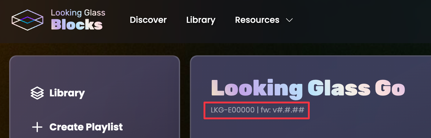 To confirm that the serial number matches the one on your device, check the sticker on the bottom of your Looking Glass Go.