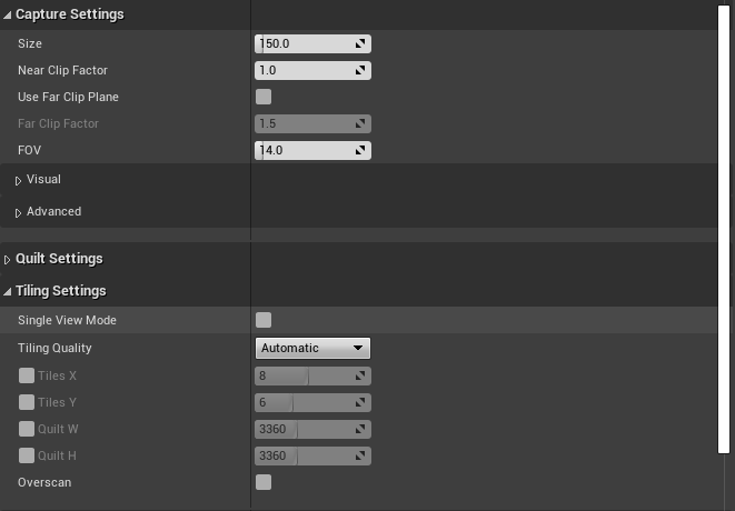 Editing the Size variable changes the size of the HoloPlay Capture Actor, this is useful when you want to change the scale at which the HoloPlay Capture Actor can focus on.