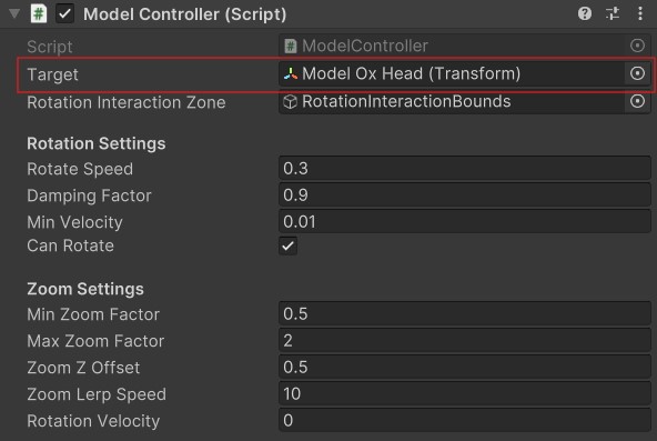 Once your model is in the scene, replace the "Target" object on the ModelController component on the DemoManager object.