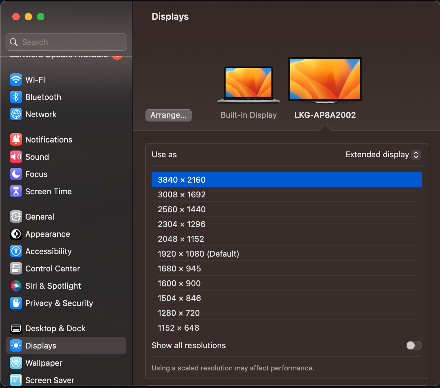 Display scaling on macOS Ventura