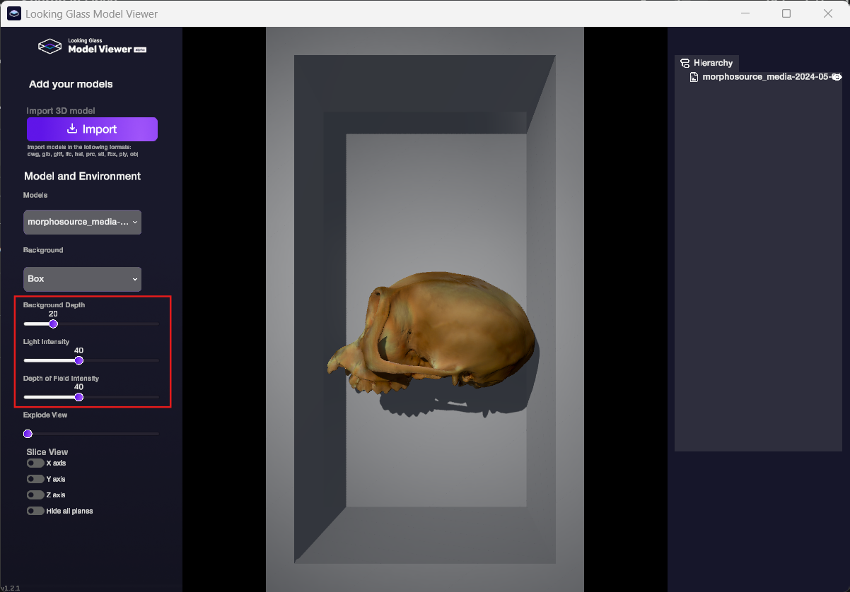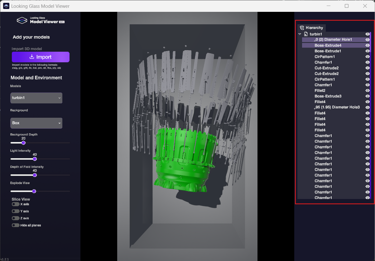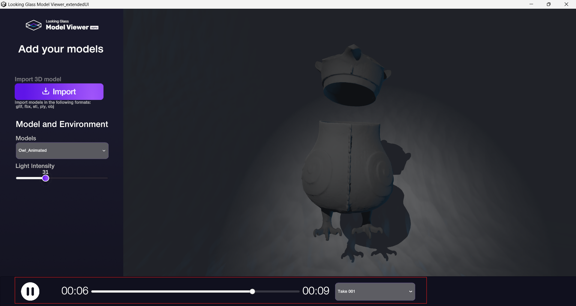 The Looking Glass Model Viewer allows users to easily import and view 3D models on their Looking Glass displays.