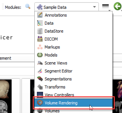 Once loaded, switch to the Volume Rendering module (available in the pulldown).